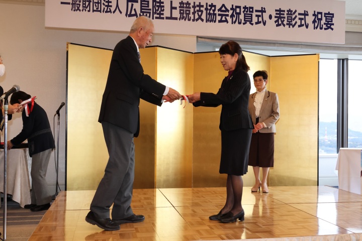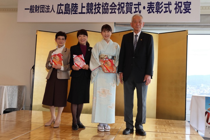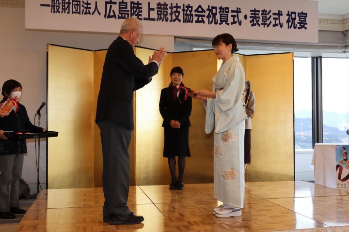 広島陸上競技協会 表彰式 12月24日(土) リーガロイヤルホテル会場において、優秀選手等の 表彰式が行われました。 広島マスターズから22名の方が表彰を受け、15名の方が出席。 ホテル32階の素晴らしい展望の会場で、全国大会で活躍した学生、 実業団の選手と一緒に表彰を受けました。 (画像をクリックすると拡大表示します) 画像提供 事務局長 HOMEへ戻る