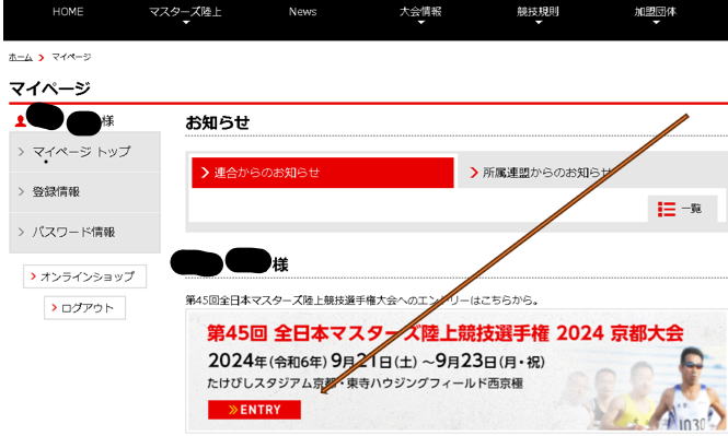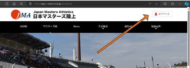 マイページ登録後 ①日本マスターズ陸上のマイページ・クイック