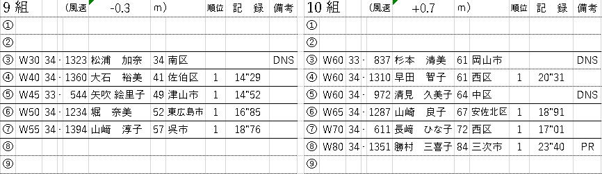 2025年9月21日 庄原 リザルト速報