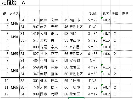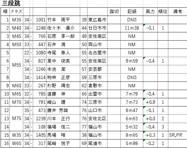 広島マスターズ陸上 記録会